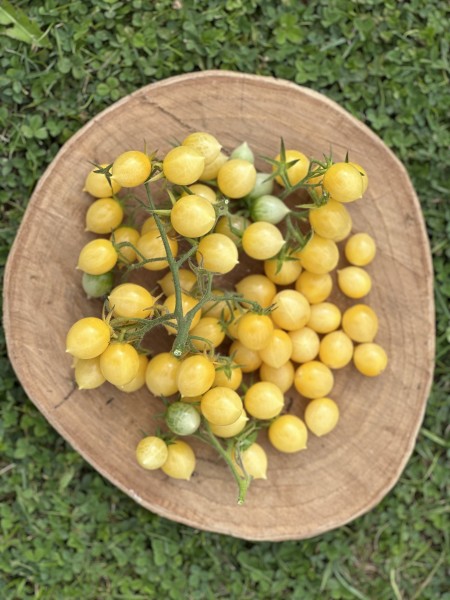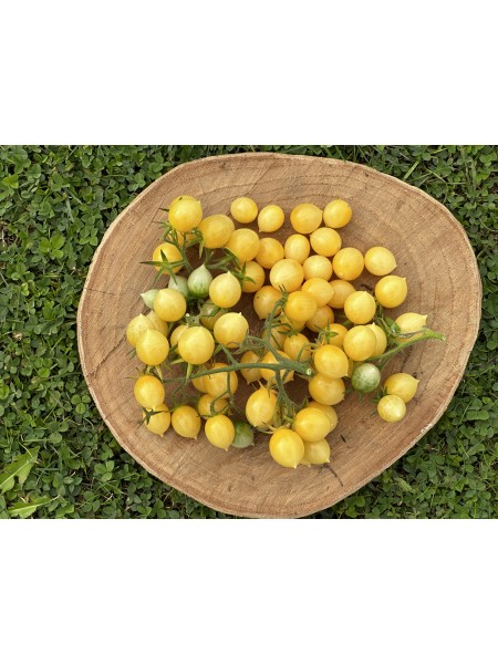 La Barry’s Crazy Cherry est une variété de tomate cerise indéterminée, appréciée pour sa productivité exceptionnelle et ses grappes spectaculaires. Les fruits, de couleur jaune pâle, sont de forme allongée et légèrement pointue, rappelant des gouttes de citron. Ils sont regroupés en énormes bouquets pouvant contenir jusqu'à 40 tomates par grappe, offrant ainsi un spectacle visuel impressionnant dans le jardin.
