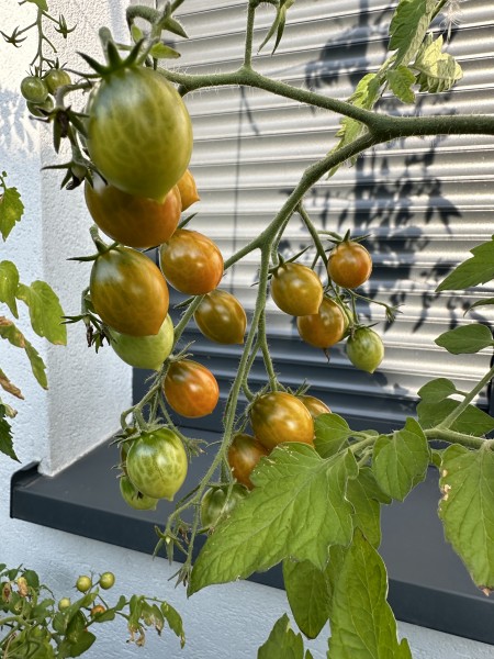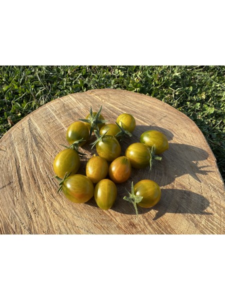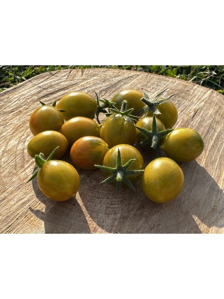 La tomate Amber Keyes est une variété récente de type multiflora, sélectionnée par Blane Horton à partir d'une lignée développée par le Révérend Michael Keyes. Elle produit de petites tomates cerises de calibre cerise, de forme ovale ou légèrement piriforme, qui arborent une peau verte se parant progressivement d'une teinte ambrée à maturité. Sa chair est juteuse et savoureuse, offrant une expérience gustative douce et aromatique.