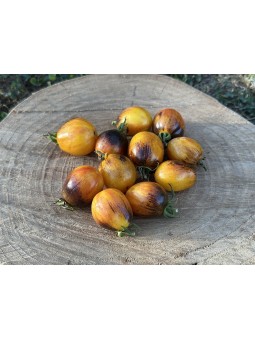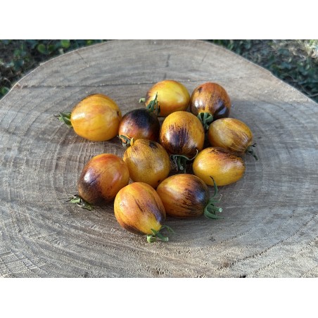 Cette variété indéterminée présente un port semi-buissonnant, atteignant environ 1,40 mètre de hauteur. Elle offre une production abondante de fruits fermes, à la chair juteuse et parfumée, au goût doux et fruité. Sa bonne capacité de conservation, tant sur pied qu’après récolte, en fait un choix idéal pour les amateurs de tomates esthétiques et savoureuses.