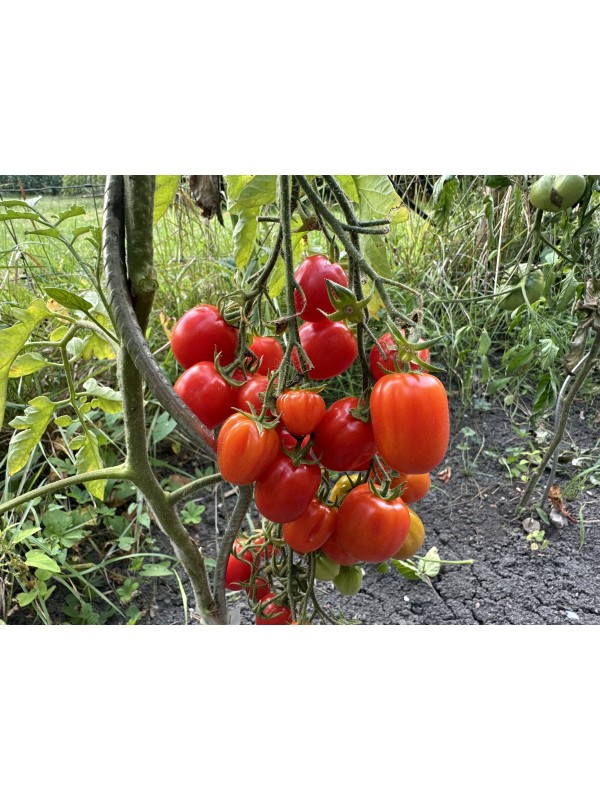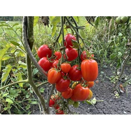 La tomate Cherry Accordeon est une variété de type multiflora originaire des États-Unis, développée par une jardinière passionnée. Elle se distingue par ses fruits petits, rouges et très plissés, d'où son nom évocateur. Chaque fruit pèse entre 10 et 15 grammes et présente une forme originale et décorative, idéale pour agrémenter vos salades ou apéritifs.