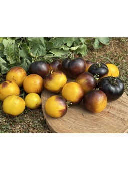 La Shokoladniy Marmelad est une variété de tomate ukrainienne développée par Ruslan Doohov. Elle produit des fruits ronds de 80 à 180 g, légèrement côtelés sur le dessus, particulièrement visibles sur les plus gros spécimens. L'épiderme est jaune orangé, parsemé de nuances brunes et de traces d'anthocyanines, surtout sur la partie supérieure du fruit. La chair est jaune orangé, juteuse et offre une saveur fruitée et équilibrée, où l'amertume et la douceur se côtoient harmonieusement.