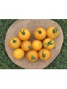 La Jaune de Thoune est une tomate d’origine suisse, plus précisément du canton de Berne dans la région de Thoune, bien adaptée aux climats frais et aux saisons courtes. Cette variété se distingue par ses fruits jaunes au aspect rond de type cocktail/cerise – ils pèsent entre 25 et 35 grammes et mesurent environ 4 à 5 centimètres de diamètre. Ils poussent en grappes de 6 à 10 fruits, avec une faible dépression à l’attache pédonculaire, ce qui donne un rendu lisse et homogène.