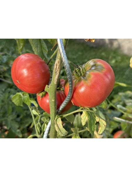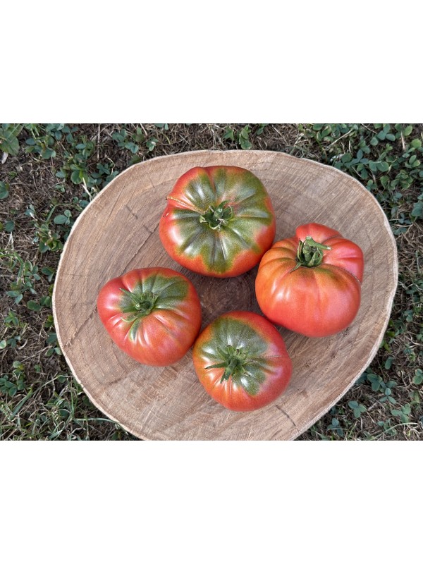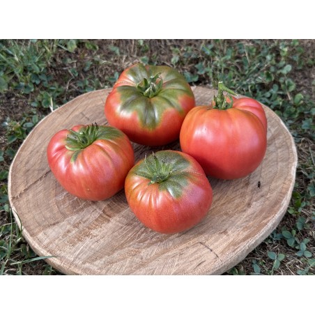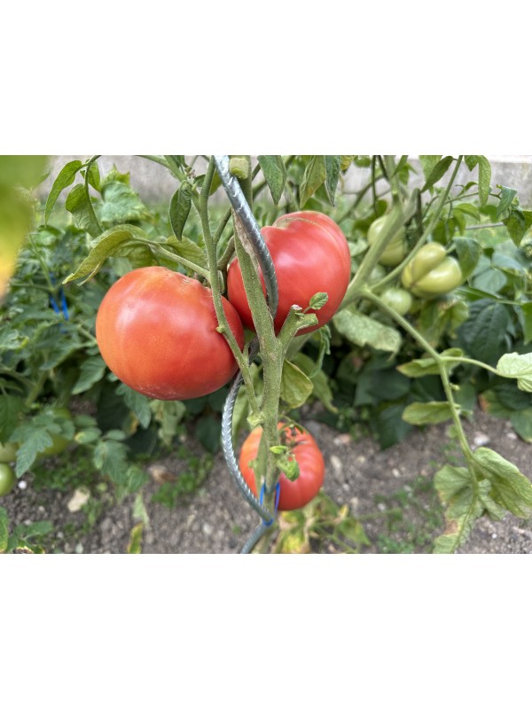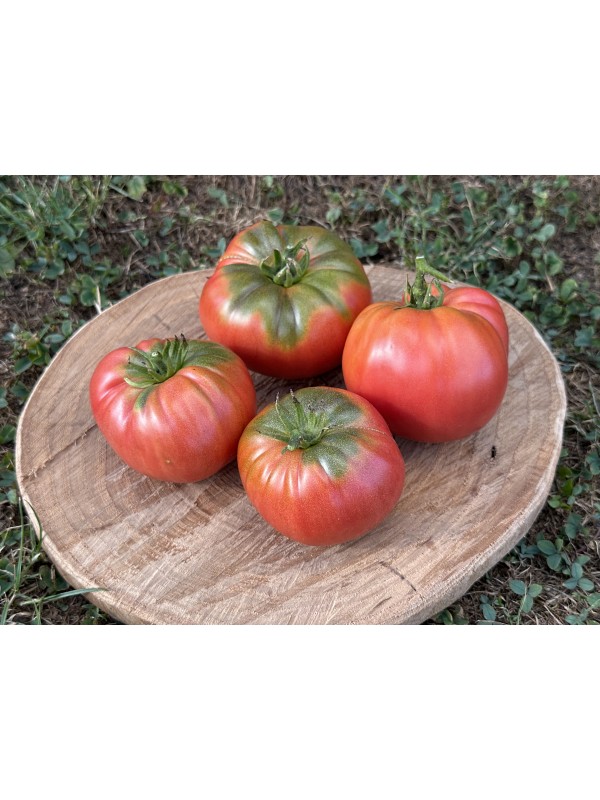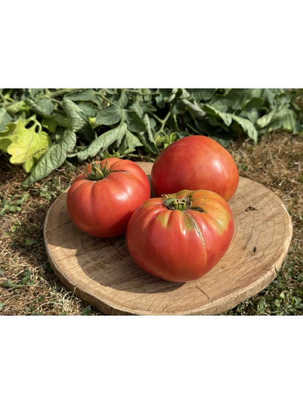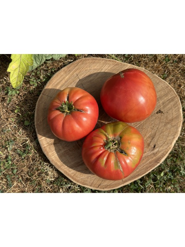 La tomate German Pink est une variété patrimoniale allemande, originaire de Bavière, déjà mentionnée dans les catalogues de semences dès 1883. Elle se distingue par ses fruits très gros pouvant peser de 300 à 800 grammes, parfois davantage, selon les conditions. La couleur de la peau est rose, souvent avec une nuance douce, caractéristique des tomates anciennes, et la forme est renflée à aplatie, avec un léger côtelage en partie haute et une importante dépression au niveau de l’attache pédonculaire. Le feuillage est de type “pomme de terre”, ce qui ajoute un charme ancien et une bonne adaptation.