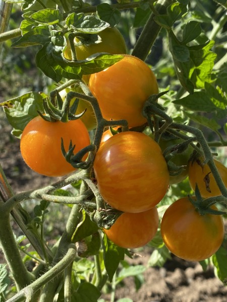 La Scarlet Starfire, ou Starfire Isis, est une variété de tomate cerise indéterminée, développée par Lee Goodwin au Nouveau-Mexique. Elle se distingue par ses fruits rondelets de taille moyenne, d'un calibre cerise, arborant une peau orange rayée de rouge et de jaune, offrant ainsi un aspect visuel attrayant. Ces tomates sont particulièrement savoureuses, croquantes et juteuses, avec une saveur douce qui ravira les amateurs de tomates sucrées.