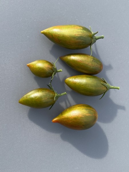 La tomate Artisan™ Green Tiger est une variété de type cordon, originaire des États-Unis, développée par Fred Hempel d'Artisan Seeds. Elle se distingue par sa forme allongée et pointue, rappelant un petit piment, et sa couleur vert clair marbrée de jaune, qui évolue vers des nuances de rouge à maturité. Chaque fruit pèse entre 20 et 40 grammes.