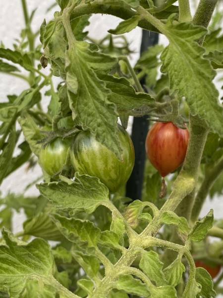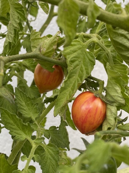 La tomate Artisan™ Pink Bumble Bee est une variété de tomate cerise indéterminée, issue de la collection Artisan Seeds. Elle se distingue par sa couleur rose vif, marbrée de bandes jaunes et oranges, offrant une apparence aussi attrayante que son goût. Les fruits, de forme ronde et légèrement aplatie, pèsent environ 20 à 25 grammes. Leur peau fine mais ferme est résistante aux éclatements, et leur chair juteuse dévoile une saveur sucrée et légèrement acidulée, idéale pour les salades ou la consommation directe.
