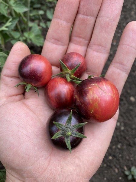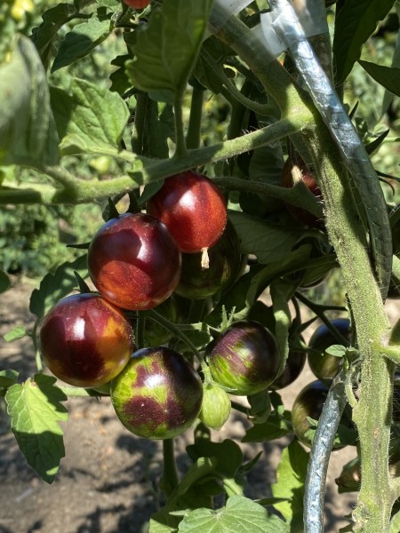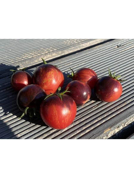 La tomate Black Strawberry est une variété ancienne et indéterminée, issue d'un croisement entre la 'Bosque Blue' et la 'Strawberry Tiger'. Elle se distingue par sa précocité, avec une récolte possible dès 60 jours, classant cette variété parmi les tomates très précoces (45 à 65 jours).