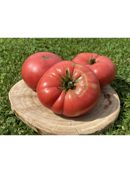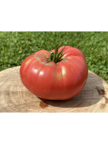Cette variété de type beefsteak produit des fruits gros, pouvant atteindre jusqu'à 1 kg, de couleur rose à rouge. Leur forme est aplatie et côtelée, avec une peau fine et une chair dense, juteuse et sucrée, équilibrée par une légère acidité. Les fruits sont multiloculaires, offrant une texture agréable tant crue en tranches épaisses que cuite en sauces ou coulis.