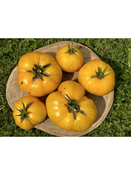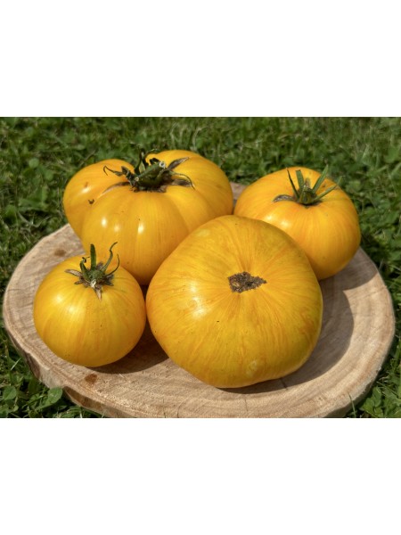 La tomate Pork Chop est une variété ancienne de type beefsteak, développée par Brad Gates de Wild Boar Farms. Elle se distingue par sa couleur jaune vif, parfois marbrée de vert, qui évolue vers un doré éclatant à maturité. Sa forme légèrement aplatie et ses fruits de calibre moyen, pesant entre 225 et 340 grammes, en font une tomate idéale pour les salades et les tranches épaisses.