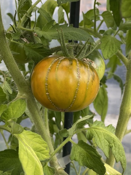 La tomate Verte de Huy est une variété ancienne et rare originaire de la région de Huy, en Belgique. Cette variété mi-saison (80 à 100 jours) produit des fruits ronds, lisses, d'un calibre moyen à gros, pesant entre 150 et 300 grammes. À maturité, leur peau verte se teinte d'ambre, parfois accompagnée d'un léger blush rosé sur l'extrémité apicale, tandis que le collet reste vert. La chair, de couleur jaune verdâtre, est juteuse, fondante, et offre une saveur douce, sucrée et parfumée.